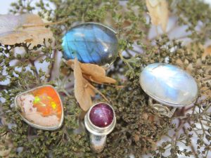Gefasste Edelstein-Anhänger, -Ohrstecker, -Ohrhänger und -Ringe